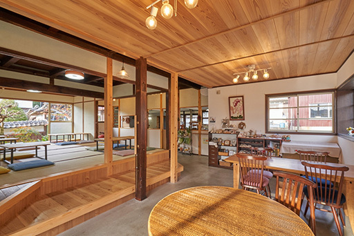古民家を改装した店内は、テーブル席と座敷を備え、ゆったりとくつろげる空間です。ぜひ、体に優しいスイーツやドリンクを心ゆくまでお楽しみください。