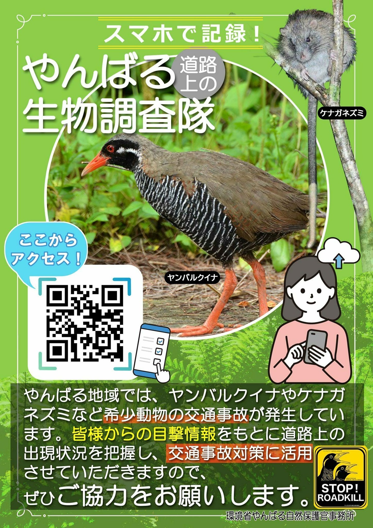 ぜひ、以下の二次元コードから環境省が実施している希少動物の調査にもご協力ください。