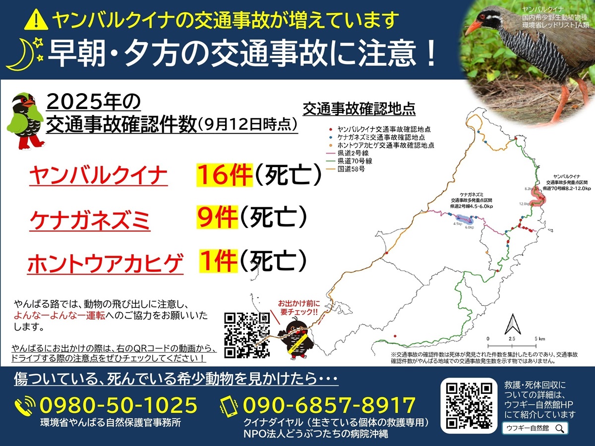 沖縄本島北部「やんばる」地域は、ヤンバルクイナやケナガネズミなど、希少な野生動物が暮らす豊かな自然の宝庫です。しかし、近年ではロードキルが深刻な問題となっています。
