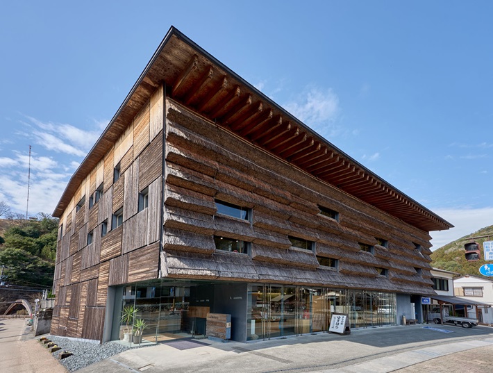 梼原町産の杉を繰り返し積み重ねて構築されており、周囲の大自然と調和しながら「梼原の象徴」としての迫力ある存在感を表現しています。建物内のギャラリースペースでは「隈研吾の小さなミュージアム」が展示されています。