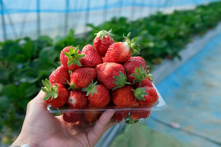 5月中旬に最盛期を迎える赤崎いちご園では、真っ赤に完熟したいちごを摘み取りして楽しめます。いちごの香りいっぱいのいちご園で初夏の旬を味わってみましょう!進出園、松元園、宮前園の3か所です。