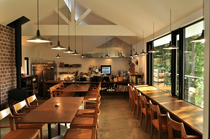 大きな窓から望む四季折々の風景や、木の温もりを感じる店内は、日常の喧騒を忘れさせてくれる心地よい空間。