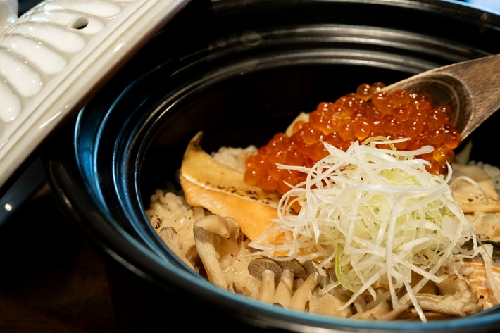 tomoniのごはんは大きくわけて2種類「肉」と「魚」のメニューが中心。お肉は希少種知床牛から知床代表するジビエの鹿肉まで多種のメニューを取り揃えています。お魚の人気メニューは「鮭といくらの土鍋ごはん」を中心にキンキの煮つけやホッケ定食等様々なメニューを取り揃えています。