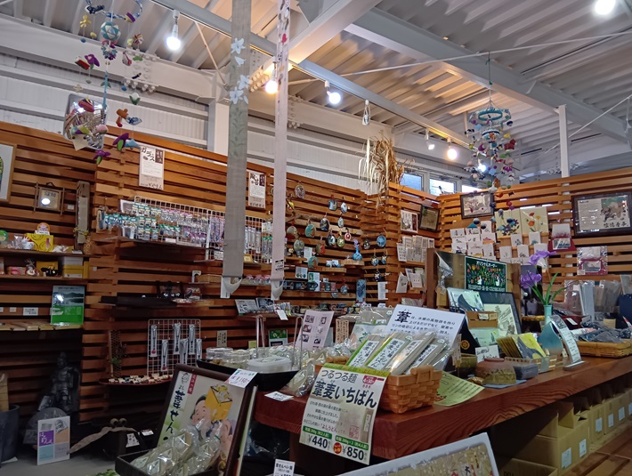 館内には、近江八幡の工芸品を取りそろえたショップと、 琵琶湖の葦(よし)を練り込んだ葦うどんを味わえるカフェを併設しています。