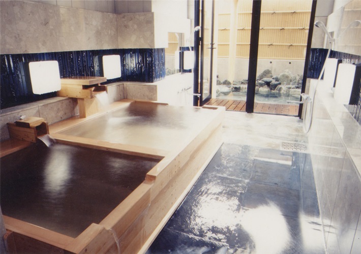 "約7,500万年前の白亜紀末期、地層、深さ1,500mの砂岩・泥岩層の割れ目から湧水する源泉は、泉温50度と高温です。 西日本最大級の野天風呂は、景観を更に引き立てるよう最大10tもの自然石を配し、庭園のような美しい空間を演出しています。