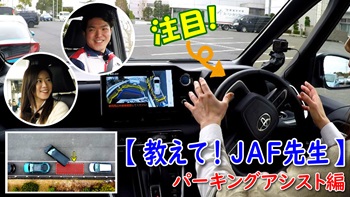 YouTuberの木村亜美さんにパーキングアシストを使って駐車をしていただきました。パーキングアシストはどういった機能なのか、使用するうえでの注意点についてJAF先生が解説します!ぜひ、日頃の交通安全にお役立てください♪
