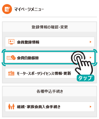 マイページメニューの「会費自動振替」よりお手続きを行ってください。