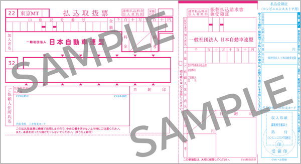- 払込取扱票に記載されている「JAF継続会費の払込期限」もしくは「コンビニエンスストアでの本用紙使用期限」までにお支払いください。