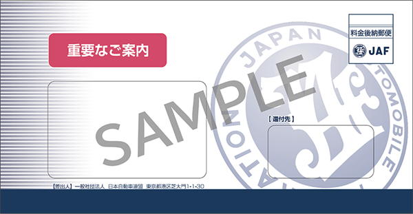 - お支払い後、受領書が会員証の代わり(仮会員証)となります。会員証が届くまでの間(約3週間)は、仮会員証をご携帯いただき、JAFの諸サービスをご利用いただく際にご提示ください。なお、以下のバーコード決済(請求書払い)を利用し払込される場合は、受領の押印が必要な払込受領証を 仮会員証としてご利用いただくことはできませんのでご注意ください。